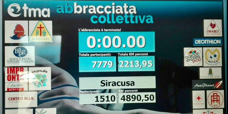 Grazie a questa manifestazione benefica saranno donate oltre 600 terapie alle famiglie di Siracusa e Catania che praticano la Terapia Multisistemica in Acqua metodo Caputo-Ippolito. “Il risultato conseguito che vede Siracusa prima fra le 11 città che hanno aderito alla Abbracciata Collettiva – ha detto il sindaco Francesco Italia – mi riempie di orgoglio. Voglio complimentarmi e ringrazio gli organizzatori e quanti hanno contribuito a conseguire questo importante risultato, che dimostra e conferma che Siracusa è una città solidale e inclusiva”.