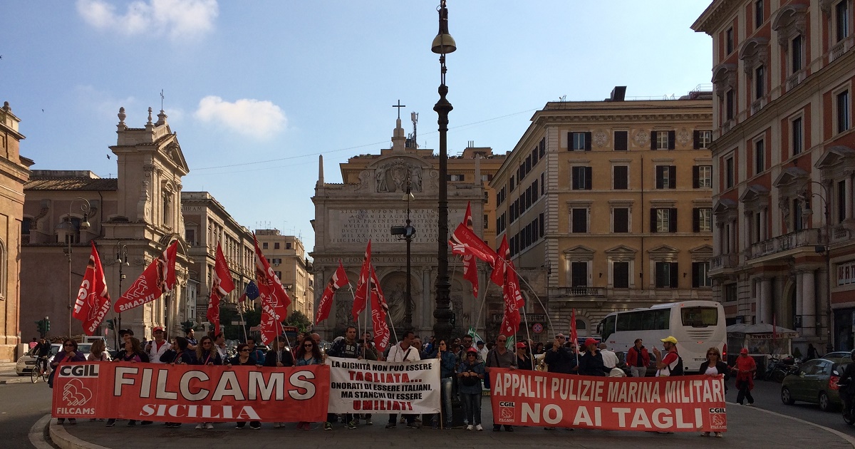 «Ancora una volta, la Marina Militare si prepara ad augurare il “buon Natale” ai lavoratori dell’appalto delle pulizie delle loro basi ipotizzando una decurtazione sostanziale del loro misero salario, ovviamente a parità di superfici da pulire e sanificare – dichiarano Alessandro Vasquez segr. gen. Filcams Siracusa e Stefano Gugliotta della segreteria Filcams CGIL Sicilia – Di fronte a salari di poche centinaia di euro mensili, solo ipotizzare la possibilità di ridurre anche solo di 100 euro lo stipendio di questi lavoratori, significa mandare sul lastrico 67 famiglie che vivono con stipendi ben al di sotto del reddito di cittadinanza . Già il 26 giugno 2015 i lavoratori dell’appalto manifestarono davanti al Ministero della Difesa a Roma per difendere il loro salario, anche in questo caso siamo pronti a mobilitare i lavoratori Siciliani con i colleghi della Toscana, Liguria e Sardegna per difendere il diritto alla dignità dei lavoratori che solo il lavoro può dare».