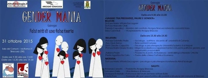 Per quanto riguarda Siracusa noi abbiamo presentato un progetto “Scuola Arcobaleno” che certamente non cerca di spiegare la scelta del sesso biologico di una persona in quanto come ho già scritto la teoria gender non esiste, ma andiamo a portare il concetto di rispetto e parità fra tutti gli individui essi siano omosessuali eterosessuali, donne o uomini>>.