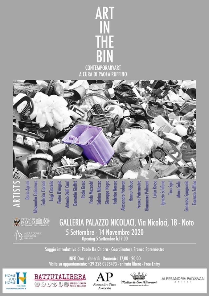 In esposizione fino al prossimo 14 novembre, la mostra “ART IN THE BIN” porterà per la prima volta a Noto un’ottantina tra sculture, installazioni e opere pittoriche di 22 artisti, le cui opere sono state esposte in Italia e all’Estero, candidando di fatto la capitale del Barocco,attorno cui ruota un fermento culturale di ampio raggio a diventare anche una delle sedi più interessanti dell’arte contemporanea.
