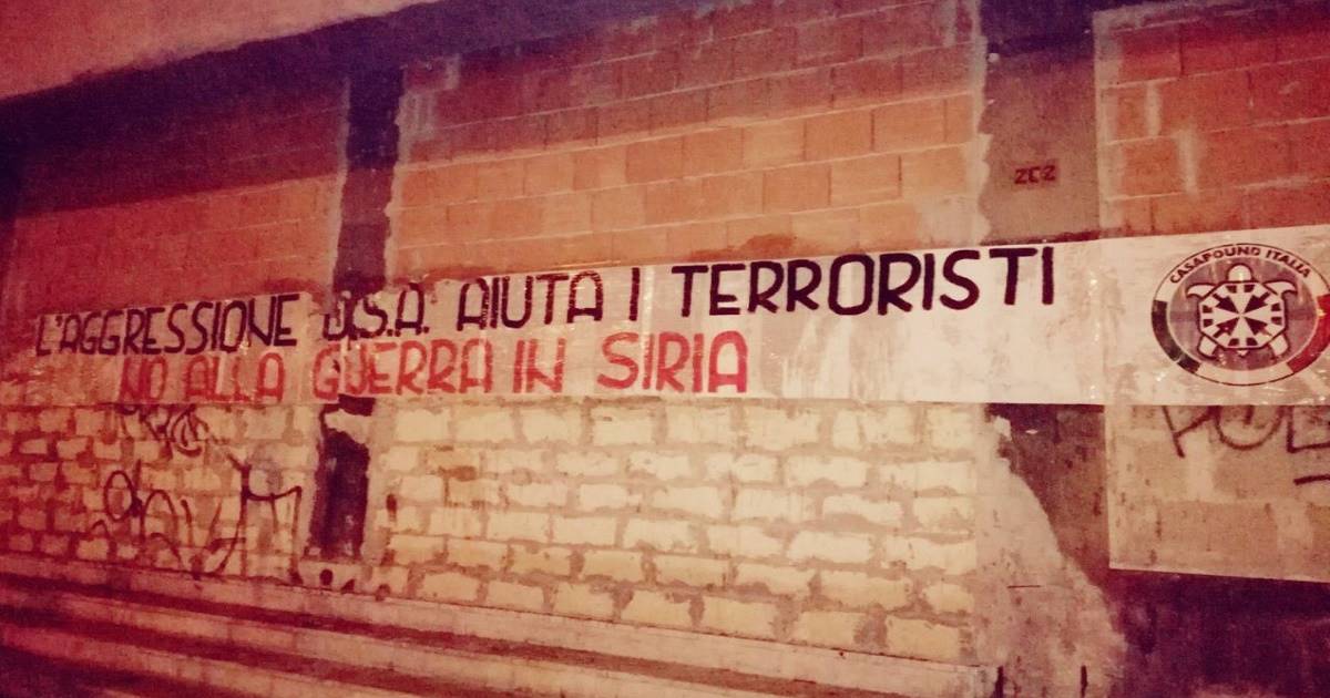 Siracusa. «L’aggressione Usa aiuta i terroristi. No alla guerra in Siria». Questo il testo dello striscione affisso nella notte da CasaPound Italia in cento città italiane tra cui Palermo, Catania, Trapani, Agrigento, Ragusa, Siracusa, Noto e Milazzo in Sicilia.