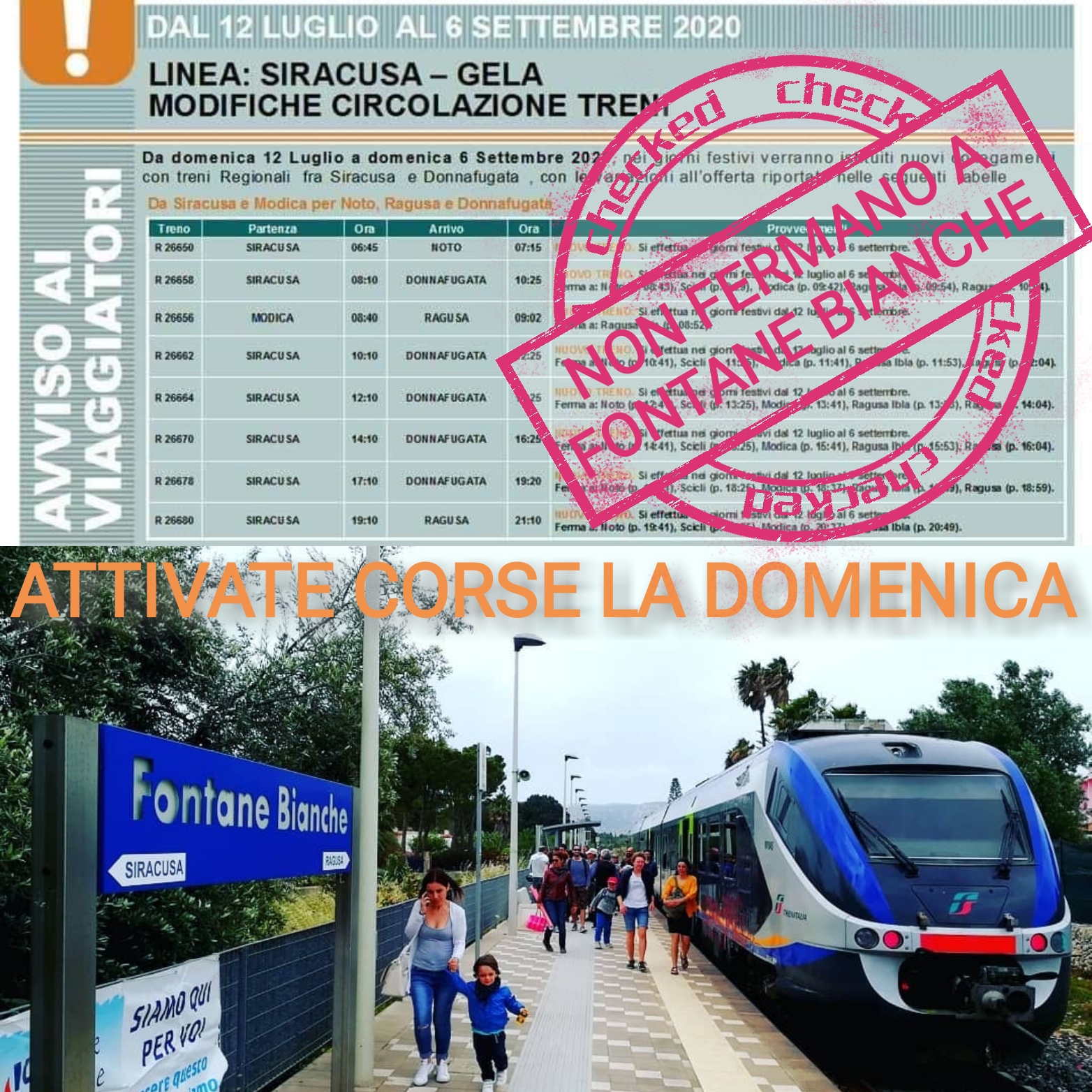 “Ad un anno di distanza nulla è stato fatto – spiega l’ex consigliere comunale Carlo Gradenigo – lasciando che Trenitalia attivasse la tratta ferroviaria Siracusa/Noto la domenica e festivi, saltando di fatto la fermata di Fontane Bianche”.