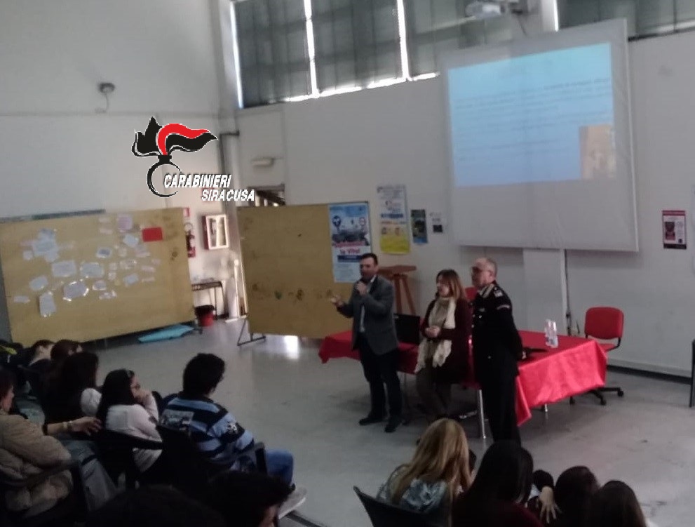 News Augusta. I Carabinieri della Stazione di Augusta nell’ambito del progetto di cultura e diffusione della legalità promosso dal Comando Provinciale Carabinieri di Siracusa in collaborazione con gli Istituti Scolastici della provincia, hanno incontrato gli studenti del 2° Istituto Superiore Statale megarese “Arangio Ruiz”.