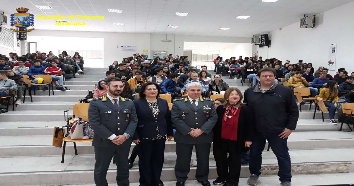 Augusta. Questa mattina la Guardia di Finanza ha incontrato gli studenti del IIS RUIZ di Augusta, nell’ambito del progetto che trae origine da un Protocollo d’intesa tra il Comando Generale del Corpo ed il Ministero dell’Istruzione, dell’Università e della Ricerca finalizzata a promuovere, nell’ambito dell’insegnamento “Cittadinanza e Costituzione”, un programma di attività a favore degli studenti della scuola primaria e secondaria.