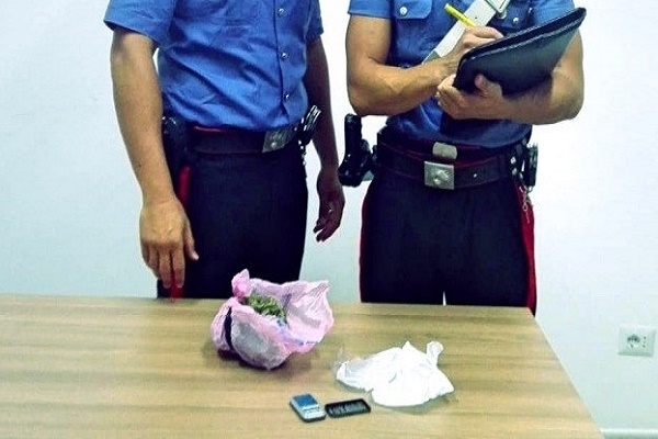 Al predetto, a seguito di un’accurata perquisizione domiciliare, venivano sequestrati, abilmente occultati in una scarpiera posta sul balcone della propria abitazione circa 100 gr. di sostanza stupefacente del tipo Marijuana, mentre all’interno dell’appartamento un bilancino di precisione e vario materiale idoneo al confezionamento dello stupefacente.