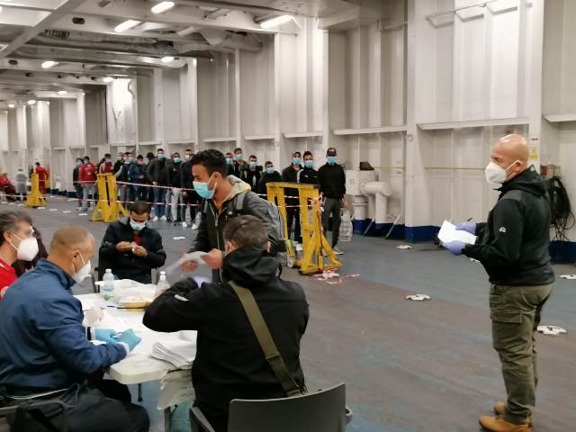La complessa macchina organizzativa messa in campo prevede il coinvolgimento di numerosi uffici della Questura che trattano i vari aspetti legati alla gestione dei migranti che, negativi al secondo tampone, vengono fatti sbarcare dalle navi.