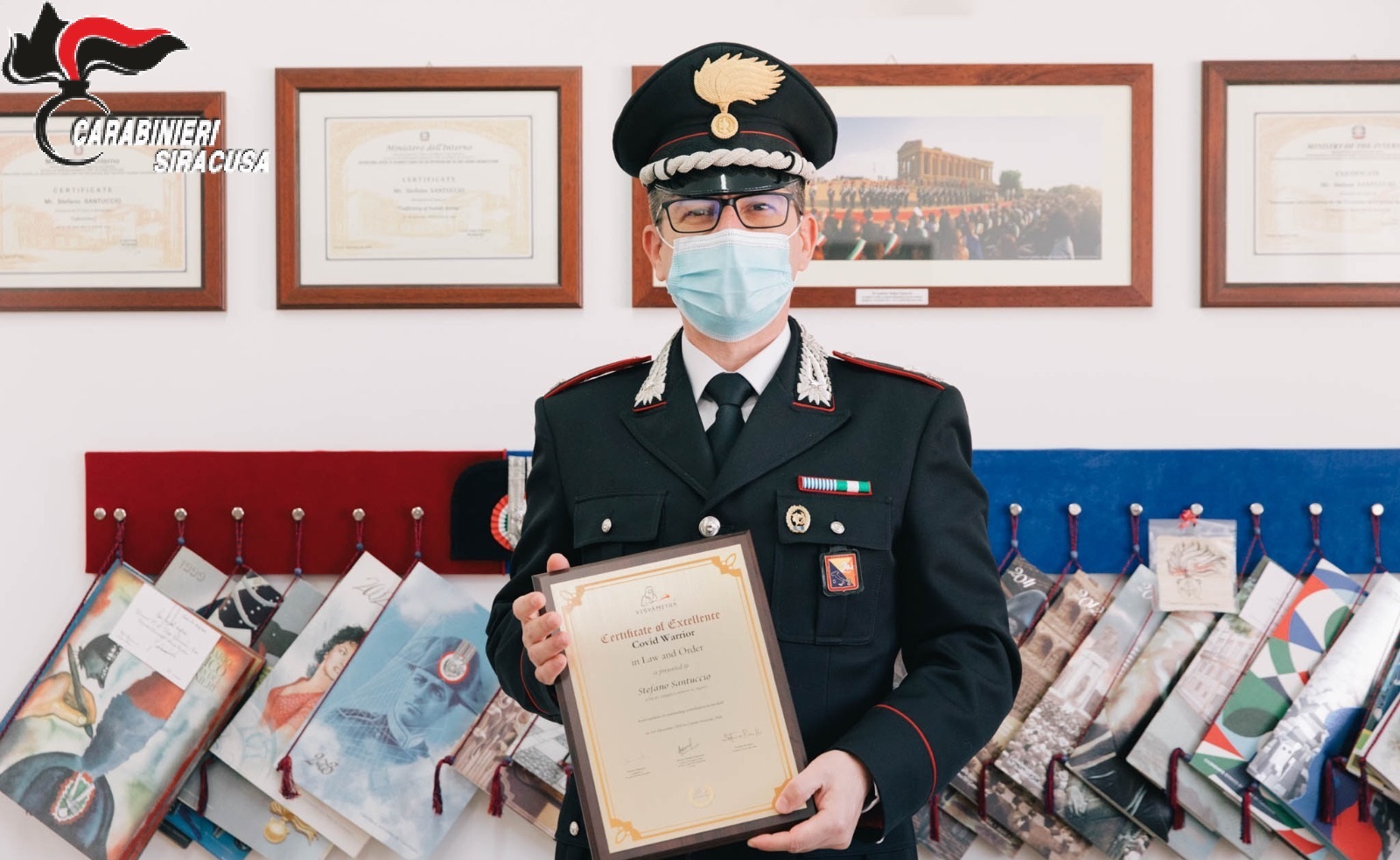 Ieri, nel suo ufficio presso la caserma dei Carabinieri di via Aldo Moro 7 ad Augusta, ovviamente nel rispetto delle misure di contenimento del virus, il Maggiore Santuccio ha ricevuto dalle mani dell’Avvocato Stefano Pipitone, rappresentante e coordinatore della ONLUS, la targa a lui indirizzata.