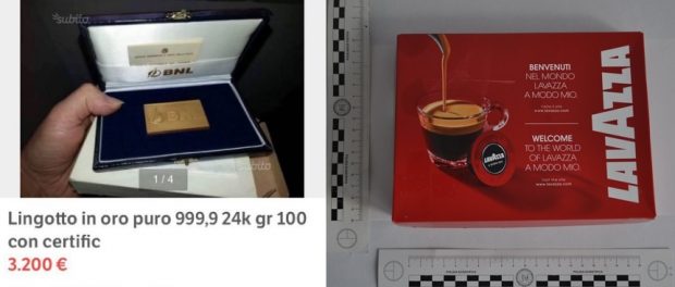 Gli Agenti del Commissariato, interrompevano l’azione delittuosa riuscendo ad intercettare, nell’agenzia di spedizione, il pacco contenente dei biscotti invece dell’oro promesso in vendita.