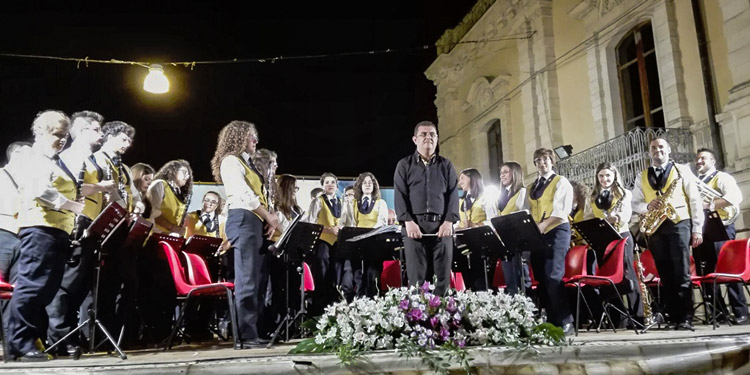Sul palco di via XX Settembre, davanti ad un pubblico delle grandi occasioni, con la direzione del M° Sebastiano Liistro, davanti al Sindaco Marilena Miceli, all’Amministrazione comunale, al loro Presidente Sebastiano Scaglione, a suonarla, tra gli applausi, ci sono i componenti la Banda della “Città del Liberty e della Musica”, che da 37 anni ospita e promuove uno dei più importanti appuntamenti nazionali dedicato alle Bande musicali, vero e proprio valore culturale e delle tradizioni nelle comunità dove hanno vita.