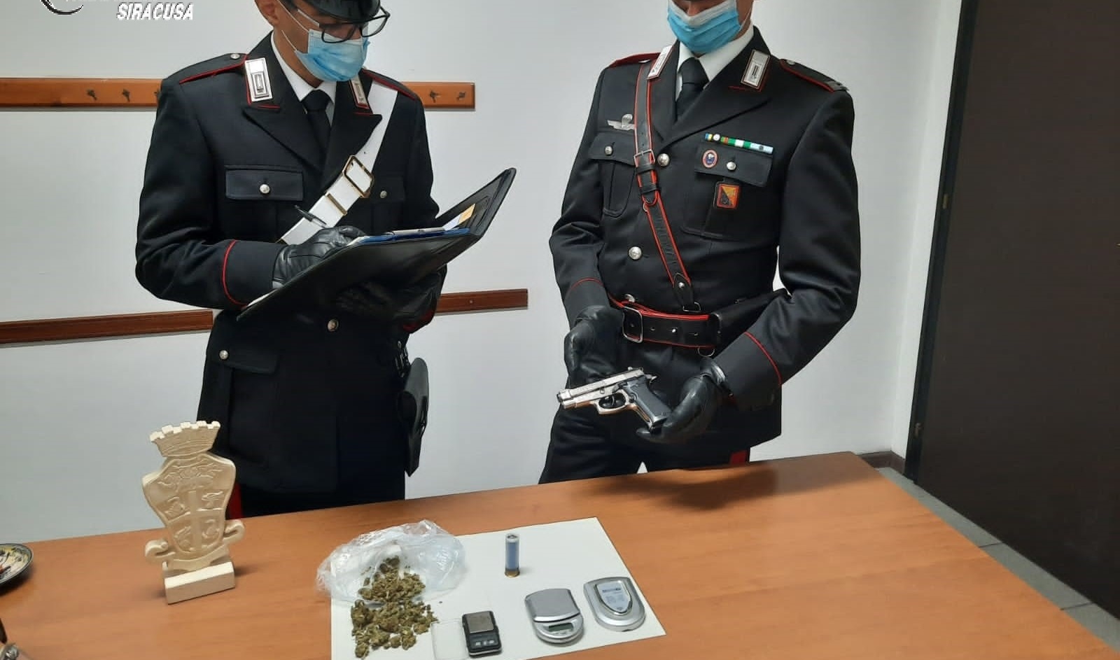 Nel corso del pomeriggio di ieri i Carabinieri della Stazione di Canicattini Bagni hanno tratto in arresto in flagranza del reato di detenzione ai fini di spaccio di sostanza stupefacente e detenzione illegale di arma clandestina S. S., classe 1988, già noto alle forze dell’ordine per i suoi precedenti di polizia.