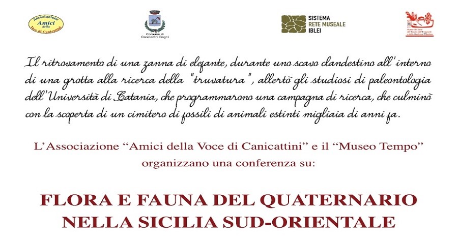 Canicattini Bagni. “Flora e Fauna del Quaternario nella Sicilia Sud Orientale”, questo il titolo della conferenza promossa dall’associazione “Amici della Voce di Canicattini” che avrà luogo venerdì 27 aprile nei locali del Museo Civico Tempo, con inizio previsto per le 18.