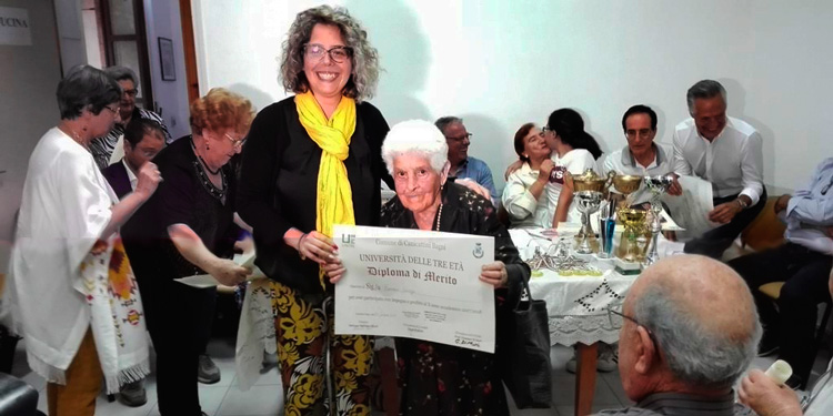 A conclusione degli interventi, come ogni anno, il Sindaco Marilena Miceli ha provveduto a consegnare gli attestati di merito a questi “studenti modello” di tutte le età, desiderosi di aver aggiunto altri mattoni al loro sapere, come nonna Giuseppa Romano, 94 anni, presente all’appuntamento e più che felice di ritirare e leggere il suo diploma.