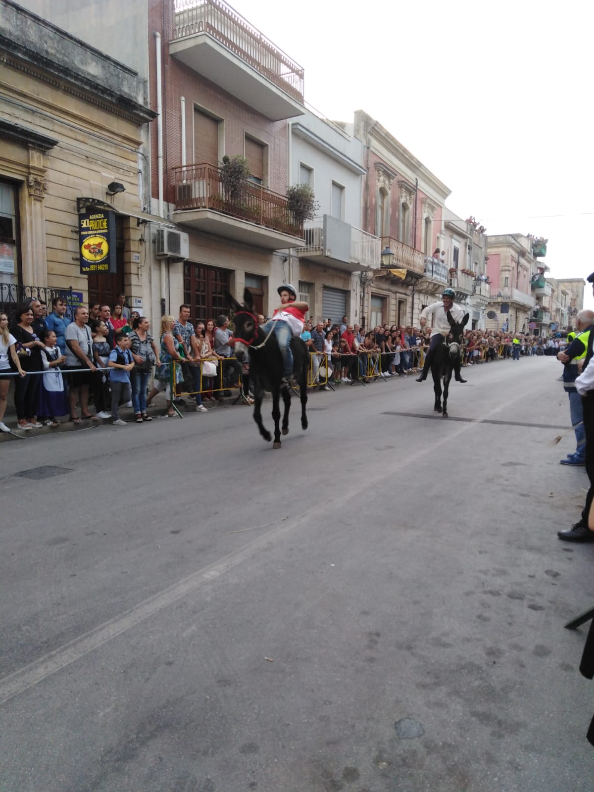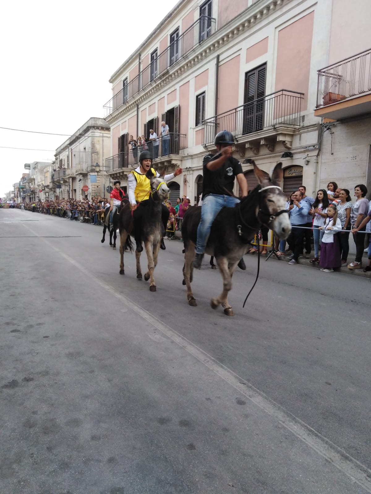 Successivamente a dominare la scena sono state le asinelle della Fattoria Cugno Lupo, di Vincenzo Cavalieri nel “Torneo a coppie con asini”. La sfida tra i fantini degli otto quartieri, in sella alle proprie asinelle, ha portato quest’anno alla vittoria del quartiere “Vadduni” con Salvatore Petrolito e Dalmazia.
