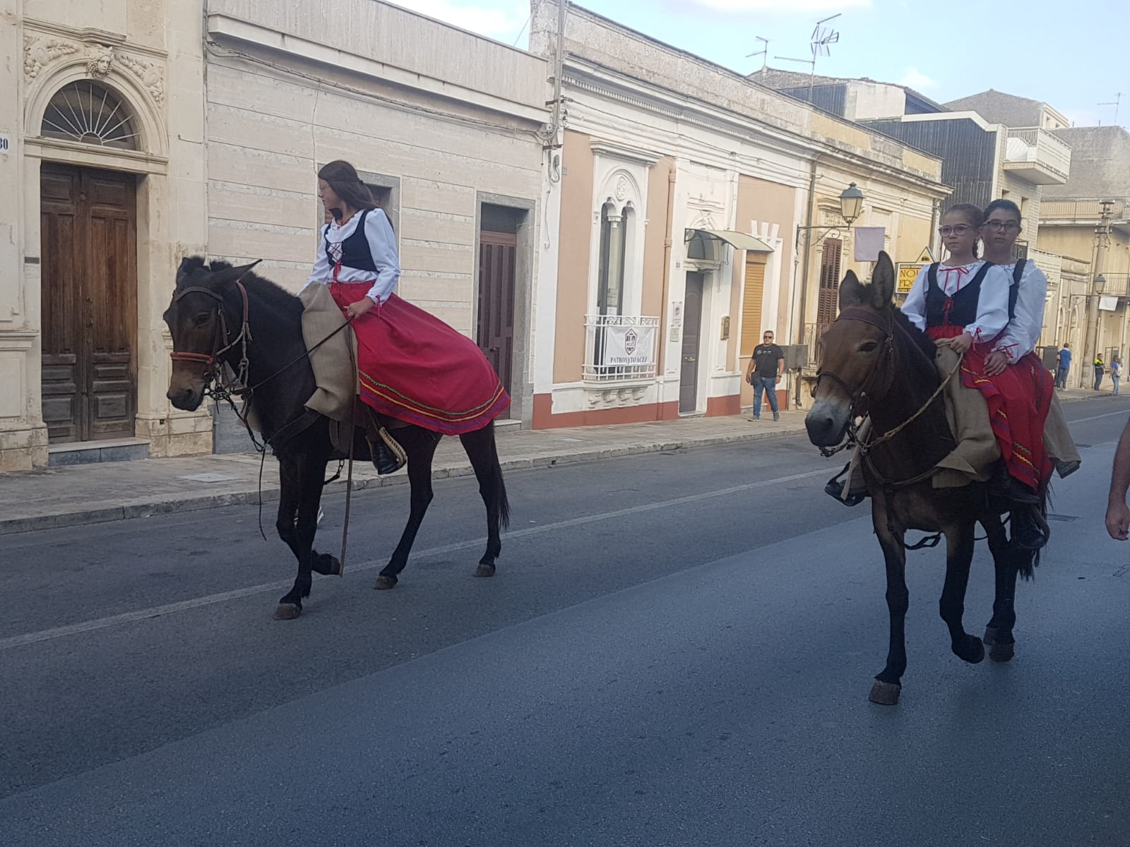 Ad aprire la sfilata, invece, è stata l’esibizione dei cavalli di pura razza spagnola con in sella Angelita Basile e Angelo Renda. Al loro seguito, il gruppo in maschera “Splendore siciliano”; una delegazione ospite del Palio delle contrade di Allumiere (Lazio) e i mulari del centro ippico terapeutico avolese di Paolo Di Pietro.