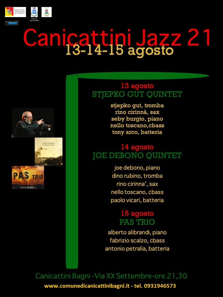 Si inizia venerdì 13 agosto, ore 21:30, con “Stjepko Gut Quintet”, con il gradito ritorno a Canicattini Bagni di musicisti tra i più apprezzati in Italia e all’estero, che in questi lunghi anni hanno incrociato la piazza canicattinese entusiasmando il pubblico, dal trombettista slavo Stjepko Gutal sassofonista Rino Cirinà, al giovane pianista Seby Burgio, agli esperti Nello Toscanoal contrabbasso e Tony Arcoalla batteria.