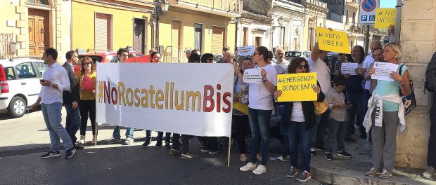 Canicattini Bagni. Domenica di tensione e pesante contestazione, questa mattina, davanti alla sede dell’Aula consiliare del Comune di Canicattini Bagni. La protesta è stata quella del Meetup 5 Stelle di Canicattini che ha ripetutamente presidiato la zona di via Principessa Iolanda, proprio all’ingresso dell’Aula consiliare, dove nel frattempo si stava svolgendo la presentazione del candidato consigliere regionale all’Ars, Paolo Amenta, alla presenza di Ettore Rosato, capogruppo Pd alla Camera ma soprattutto colui che ha dato il nome alla tanto contestata nuova legge elettorale, il Rosatellum.