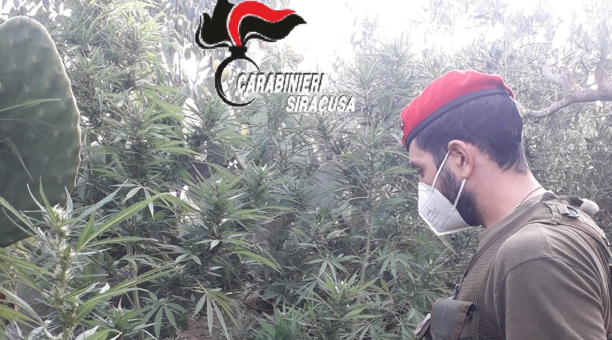 I militari dell’Aliquota Operativa della Compagnia, collaborati dai Carabinieri dello Squadrone Eliportato Cacciatori “Sicilia” di stanza in Sigonella, nella località Cannellazza di Carlentini hanno rinvenuto, occultata in un uliveto, una florida piantagione di canapa indiana composta da 60 piante alte due metri circa, in piena maturazione. L’improvvisato “agricoltore”, un pregiudicato 58enne del luogo, proprietario del fondo attiguo alla sua abitazione, è stato tratto in arresto in flagranza di reato per produzione illecita di sostanze stupefacenti, e posto a disposizione della Procura della Repubblica di Siracusa. Le piante sono state estirpate e sequestrate.