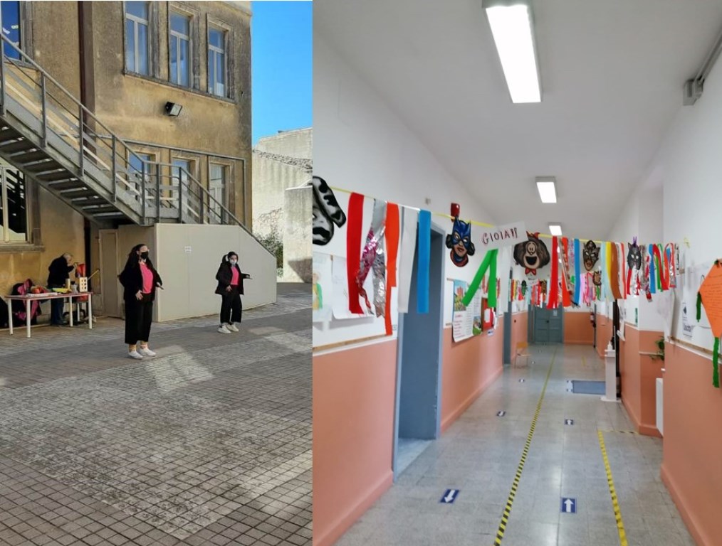 Per cui ieri, giovedì 11, e oggi, venerdì 12 febbraio, nei cortili dei rispettivi plessi, nel rispetto delle misure di distanziamento anti Covid, in programma due piccoli spettacoli di animazione, magia, illusionismo, con il Mago Stefan, le animatrici dell’Azione Cattolica, Alice e Aurora, e la musica del DJ Seby Di Maria, mentre i corridori delle scuole sono stati addobbati con installazioni artistiche carnascialesche dall’artista canicattinese Sergio Carpinteri, con la riproduzione di tante bellissime e gioiose maschere, in una cascata di colori e ricordi del Carnevale.