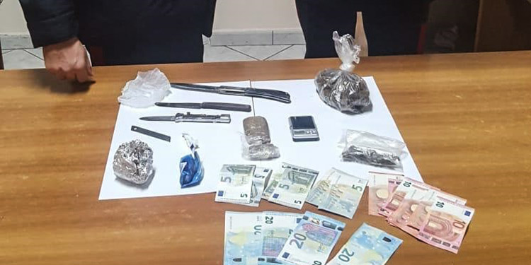 A seguito di un’accurata attività informativa, i militari hanno eseguito una perquisizione presso l’abitazione in uso al 35enne siracusano situata a Cassibile, nel corso della quale sono stati rinvenuti, ben occultati all’interno di una credenza della cucina, 96 grammi di marijuana, 28 grammi di hashish, una dose di cocaina, quattro coltelli utilizzati per il taglio dello stupefacente con lama intrisa di droga, un bilancino di precisione e una somma contanti pari ad euro 180, probabile provento dello spaccio.