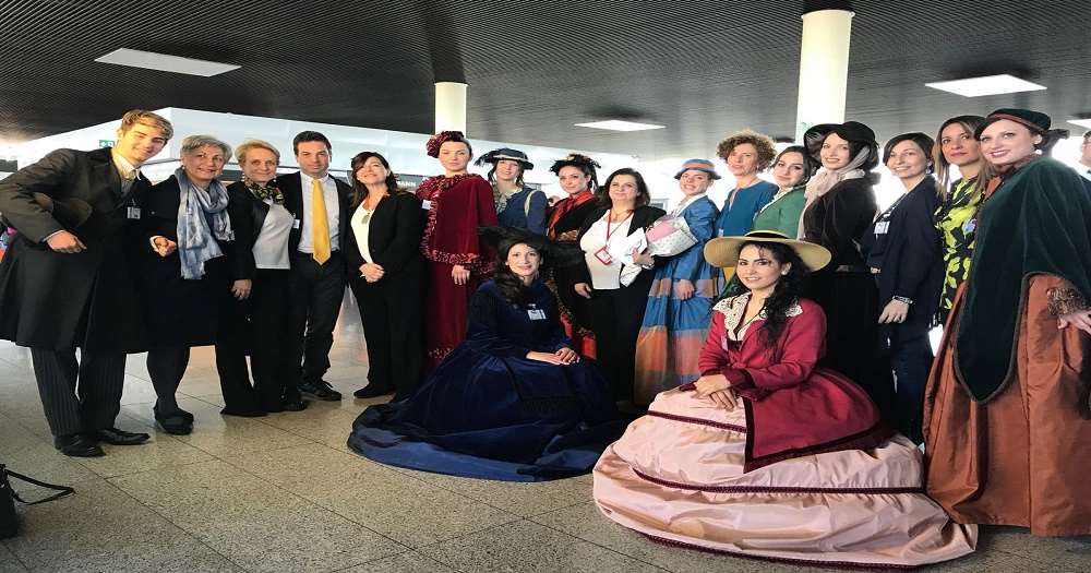 Una decina di alunne, hanno indossato abiti ottocenteschi, appartenenti alla Mostra Permanente del Costume allestita nella loro scuola. Le studentesse hanno cominciato a danzare, tra i passeggeri in attesa di imbarcarsi, sulle note della Casta Diva, aria tratta dalla Norma di Vincenzo Bellini, per poi passare al sound pop contemporaneo di Charlie Puth con il brano “How Long”.