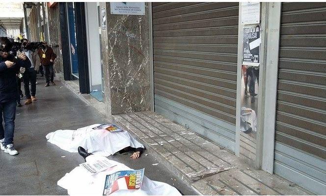 News Catania: Flash mob di Forza Nuova stamane a Catania davanti alla sede di Riscossione Sicilia, la società di recupero dei tributi controllata dalla Regione, dove i militanti hanno deposto ” i cadaveri degli ennesimi italiani uccisi dal fisco”. La protesta, su scala nazionale, ha lo scopo – afferma una nota di Forza Nuova – di “lanciare un energico segnale di allarme verso la gestione della riscossione tributi”. “La chiusura di Equitalia – afferma nella nota il segretario nazionale di Forza Nuova Roberto Fiore – è una battaglia che il nostro movimento porta avanti da anni e sempre con maggior veemenza. I criteri di riscossione dei tributi devono essere radicalmente cambiati: va chiusa una società che usa criteri spietati non tenendo conto né della situazione del territorio né della congiuntura economica, per tornare a società locali che possano gestire in maniera umana e veramente equa le riscossioni”.