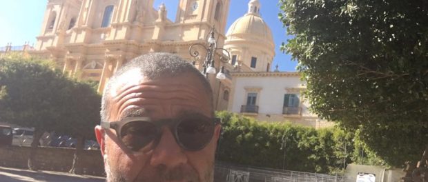 Non poteva mancare, nel suo itinerario, la città di Noto. Tra i tanti video, selfie e foto panoramiche la Iena ha postato una foto con dietro la Cattedrale.