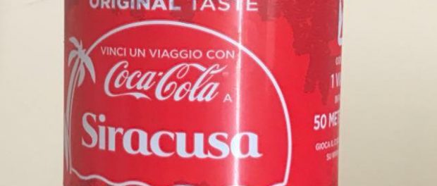 Il nome “Siracusa” è stampato in grassetto proprio sotto il marchio Coca-Cola (come si vede in foto) di colore bianco su sfondo rosso.