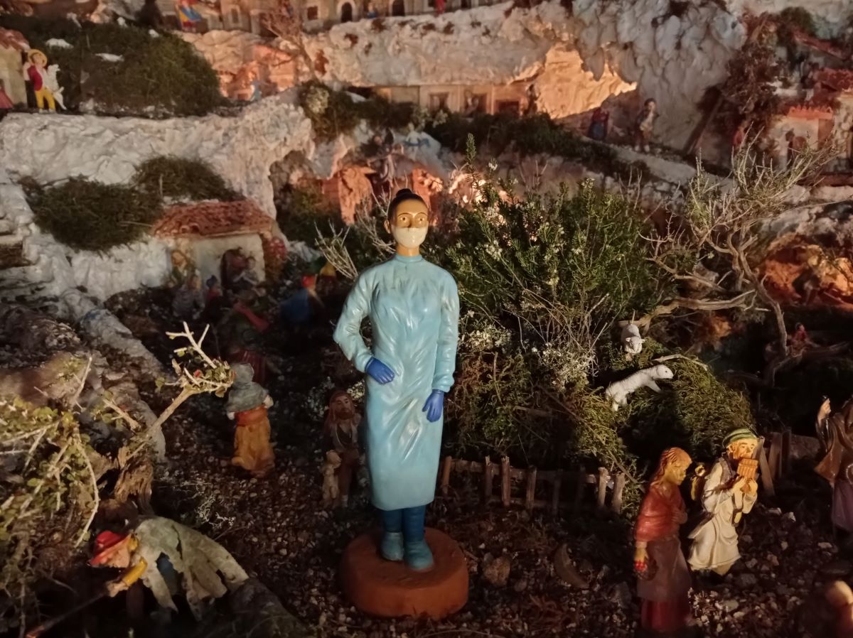 Il nuovo personaggio del Presepe 2020 è l’operatrice sanitaria, simbolo della lotta al Covid, un inno alla vita, quella delle persone guarite, salvate dall’abnegazione e dalla dedizione di tutti gli operatori sanitari.