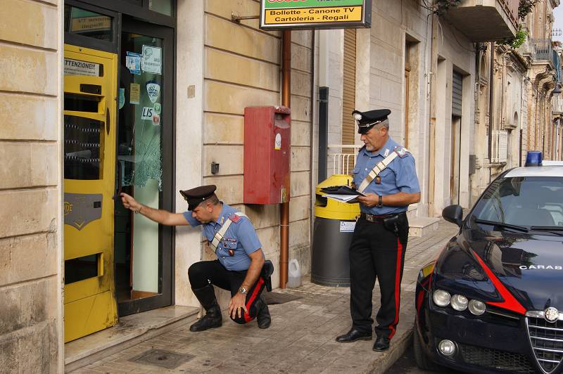 News: Nella decorsa nottata i Carabinieri della Stazione di Solarino (SR) e di Canicattini Bagni (SR), sono intervenuti presso due rivendite di tabacchi dei rispettivi centri abitati dove ignoti, a volto travisato ed armati di mazza in ferro, previa effrazione del vetro antisfondamento e della porta di ingresso dei due esercizi commerciali, si introducevano asportando una quantità imprecisata di biglietti “gratta e vinci” e diversi pacchetti di sigarette, oltre ad una macchinetta per il cambio delle banconote in monete.