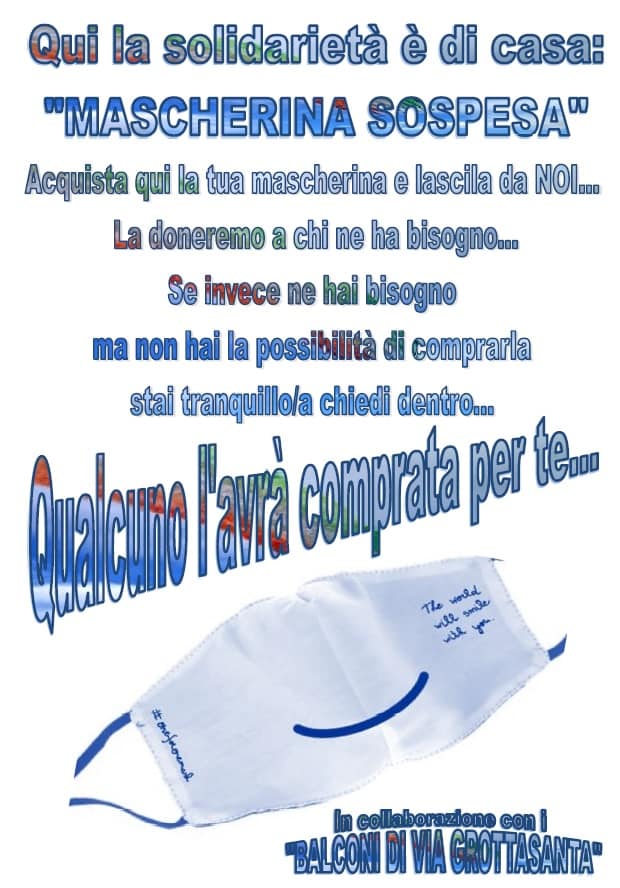 <Confermiamo che i Balconi di via Grottasanta – scrivono nella loro pagina Facebook ormai quasi virale – hanno attivato una collaborazione con varie farmacie e parafarmacie della città per l’iniziativa “mascherina sospesa”>.