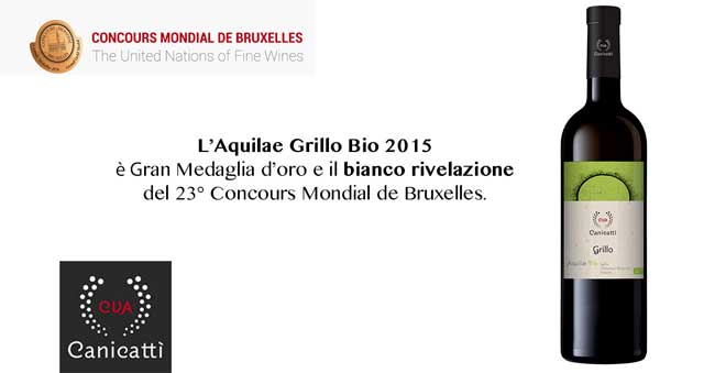 News: è siciliano il vino bianco campione del mondo 2016. Premiato a in Belgio, al XXIII Concours Mondial de Bruxelles vince la gran medaglia oro e il premio rivelazione, l’Aquilae Grillo Bio 2015 dell’azienda vinicola Cva Canicattì. A questo titolo, Cva Canicattì aggiunge una medaglia d’argento conquistata dall’Aquilae Catarratto 2015. Un’eccellenza nel panorama dei vini siciliani, sempre più affermati e riconosciuti nei grandi concorsi internazionali. Due varietà autoctone, come il Grillo e il Catarrato, oggi ritenuti due vitigni che rappresentano il meglio della sicilianità, ma anche di freschezza e godibilità che questi vini esprimono per natura.