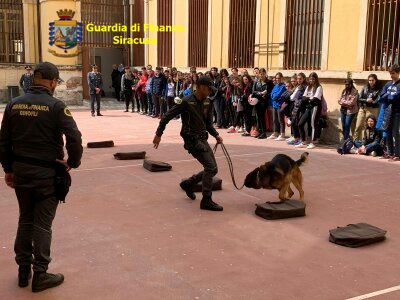Nel corso di alcuni incontri sono state effettuate dimostrazioni sulle modalità di ricerca delle sostanze stupefacenti mediante l’impiego delle unità cinofile.