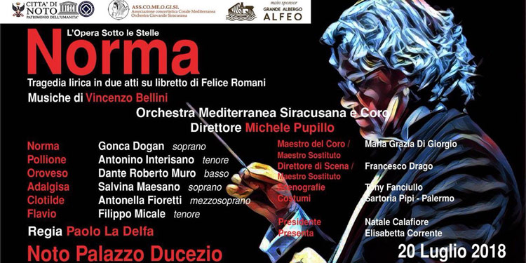 Venerdì sera, invece, torna l’appuntamento annuale con “L’Opera Sotto le Stelle” e, in piazza Municipio, sarà rappresentata Norma, la tragedia lirica in due atti su libretto di Felice Romani e musiche di Vincenzo Bellini, per la regia di Paolo La Delfa, con l’Orchestra Mediterranea Siracusana e Coro diretta dal maestro Michele Pupillo.