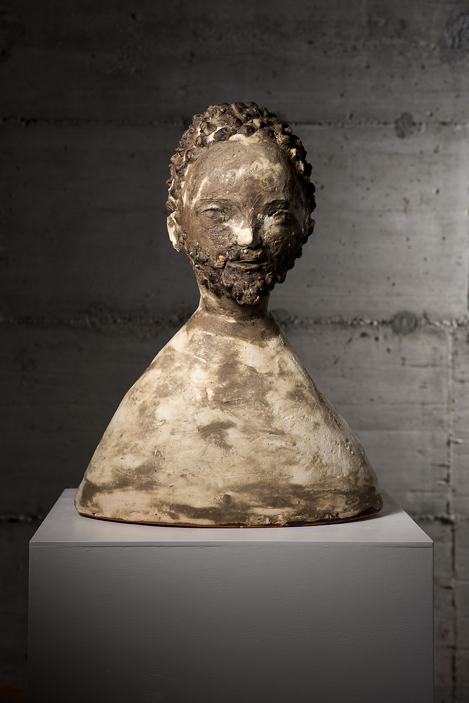 Diversi dipinti, su tela e su carta, e alcune sculture leggere, insieme alle ormai più conosciute “teste” in terracotta (raccontate nel video – per la prima volta in mostra – “Teste di / Heads of” di Franz Baraggino), posizionate in un allestimento pensato dallo stesso artista sui tre livelli del nuovo spazio ideato da Davide Bramante per promuovere l’arte contemporanea in Sicilia.