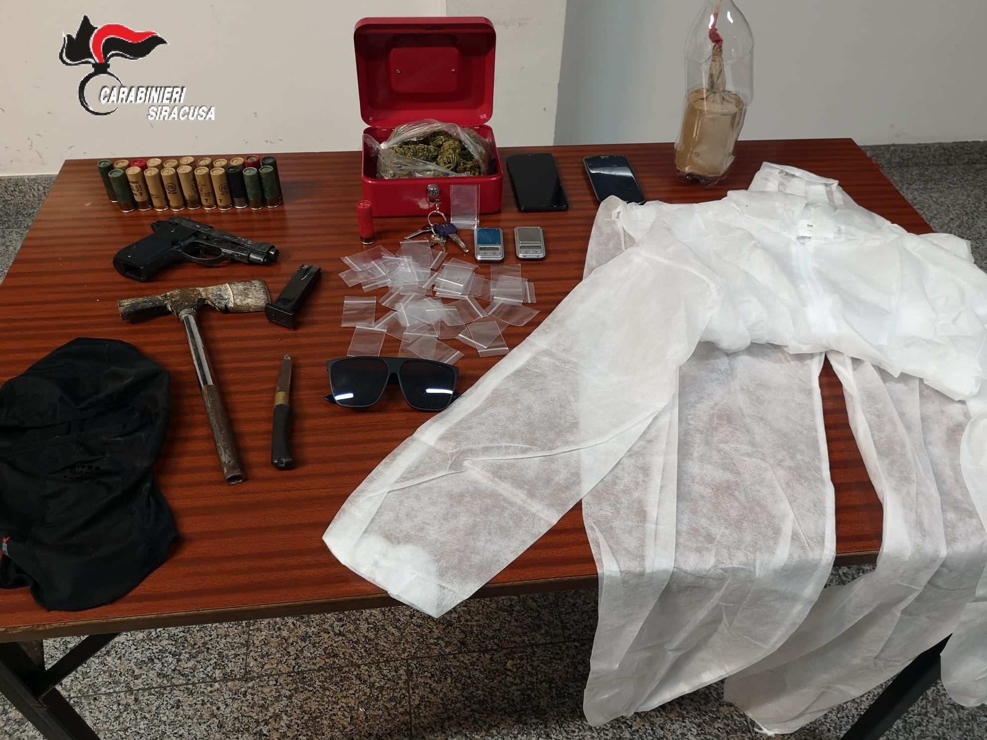 offendere e materie esplodenti, nonché per detenzione di sostanze stupefacenti ai fini di spaccio e sottoposti agli arresti domiciliari come disposto dall’Autorità Giudiziaria di Siracusa.