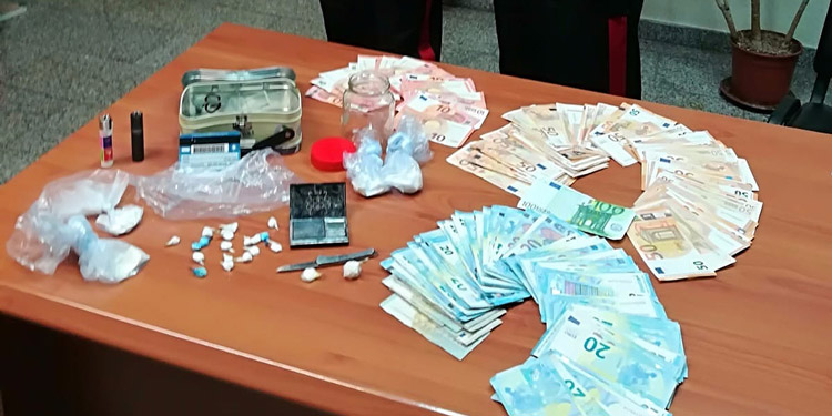 Al termine dell’operazione, sono state rinvenute 25 dosi di cocaina del peso complessivo di 8,75 grammi, 4 involucri contenenti in totale 47 grammi circa dello stesso stupefacente, nonché un bilancino di precisione, materiale atto a confezionamento di dosi e una somma di denaro pari a 5.355€, provento dell’attività di spaccio.