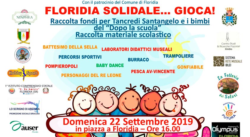 News. “Floridia Solidale… Gioca!” è il titolo del pomeriggio di divertimento organizzato domenica 22 settembre, dalle ore 16, in piazza a Floridia.