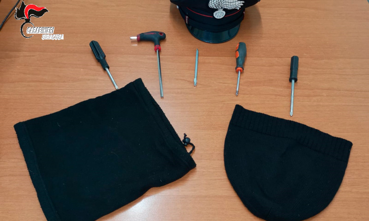 All’interno dell’autovettura sono stati trovati alcuni cacciaviti e una chiave a brugola, oltre ad un cappellino di lana e uno scaldacollo di colore nero, verosimilmente utilizzati per travisare il volto. I militari operanti hanno deferito in stato di libertà il soggetto all’autorità giudiziaria.