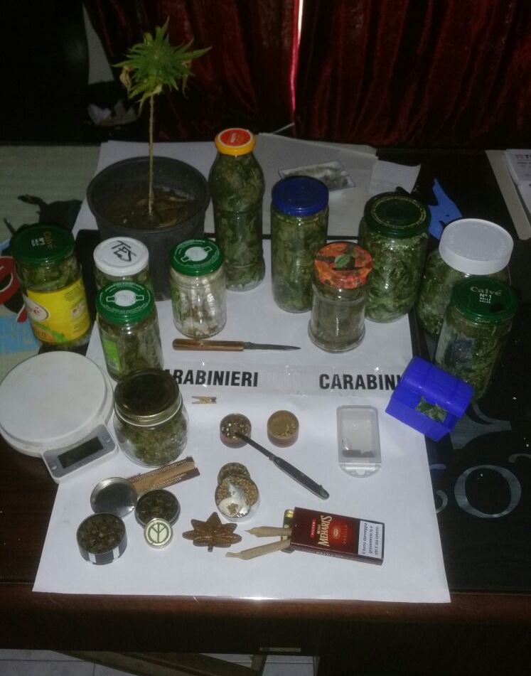 L’uomo, a seguito di perquisizione personale e domiciliare presso la propria abitazione, è stato trovato in possesso di 550 grammi di stupefacente del tipo marijuana conservati in una decina di barattoli in vetro, di 5 grammi di hashish, oltre 150 semi di canapa indiana, alcuni spinelli ed una pianta in vaso di marijuana.