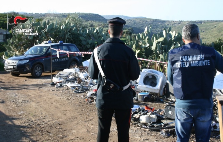 In Francofonte, i Carabinieri della locale Stazione unitamente a personale specializzato del Nucleo Operativo ecologico di Catania, nel corso di un predisposto servizio finalizzato alla prevenzione e repressione delle attività illecite nel settore dei rifiuti, accertavano in quella contrada San Leo che due soggetti francofontesi, pregiudicati, C. N. cl. 49 , coniugato, pensionato, ed il figlio C. R. cl.76, coniugato, bracciante agricolo, avevano destinato circa 2.500 mq2 di terreno di loro proprietà, sottoposto oltretutto a vincolo paesaggistico ed idrogeologico, alla realizzazione di una discarica non autorizzata contenente rifiuti speciali pericolosi e non pericolosi, quali elettrodomestici, mobili di ogni genere nonché scarti di amianto e rame che precedentemente avevano raccolto e trasportato in assenza delle prescritte autorizzazioni.