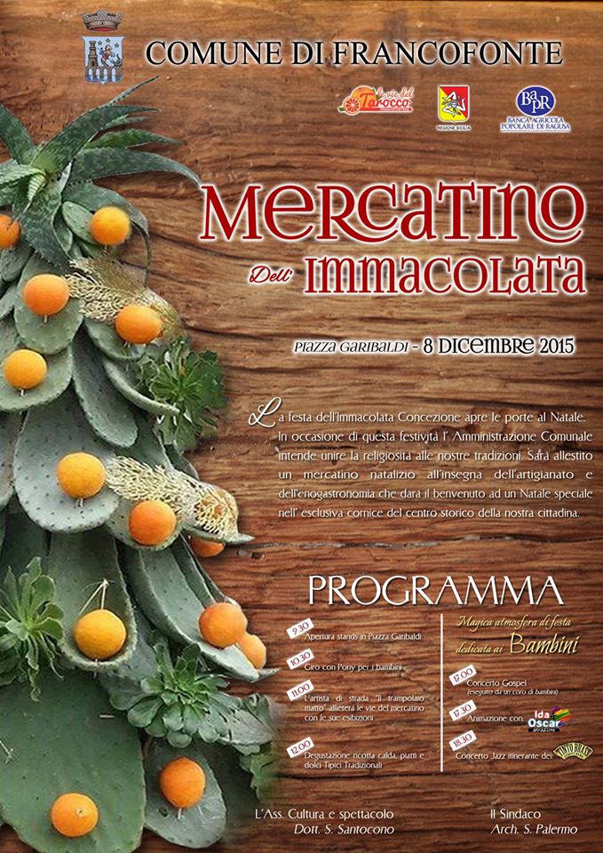 News Francofonte: in occasione della festa dell’Immacolata Concezione, l’Amministrazione comunale ha organizzato, in Piazza Garibaldi, un mercatino dell’artigianato e dell’enogastronomia.