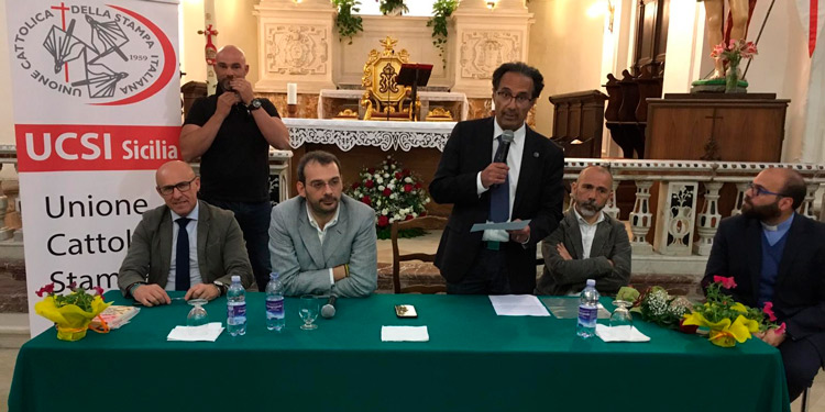 Ha esordito così Paolo Borrometi, giornalista di Tv2000 e direttore de “la Spia” e autore del libro “Un morto ogni tanto”, giovedì sera a Francofonte, dove ha incontrato nella Chiesa Madre i cittadini e i rappresentanti delle associazioni culturali, di volontariato e i club service. La conversazione con Paolo Borrometi è stata promossa e organizzata dall’Ucsi di Siracusa e dalla parrocchia Sant’Antonio Abate in collaborazione con l’Ucsi Sicilia e Assostampa Siracusa e inserita in preparazione alla 53esima Giornata Mondiale delle Comunicazioni sociali.