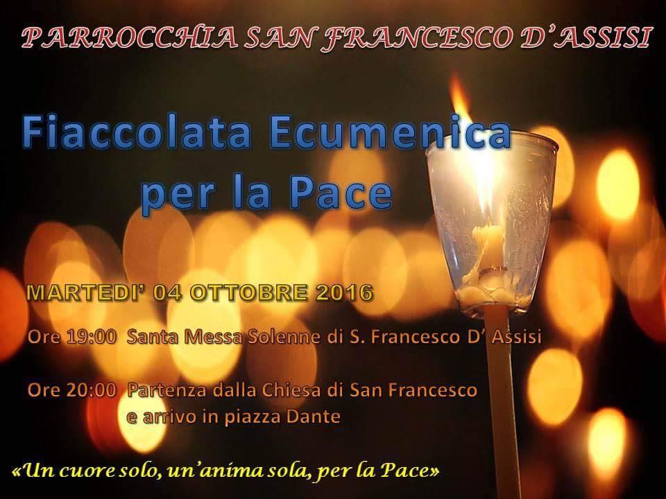 News Francofonte: si terrà il 4 ottobre la “Fiaccolata Ecumenica per la Pace”. L’iniziativa è organizzata dalla Parrocchia di San Francesco D’Assisi.