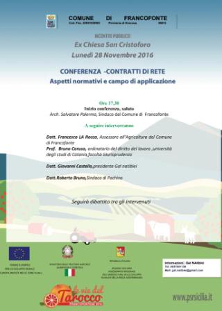 News Francofonte: si terrà lunedì 28 novembre, presso l’ex Chiesa di San Cristoforo, la conferenza dal titolo “Contratti di Rete – aspetti normativi e campo di applicazione”.