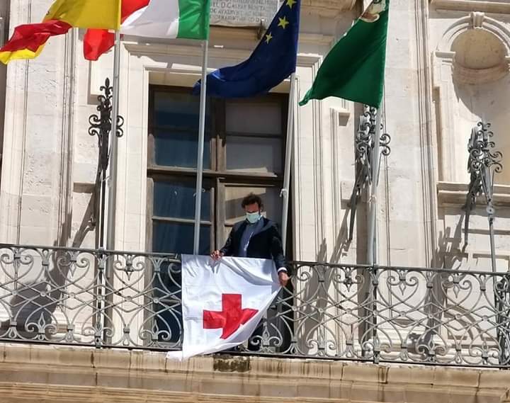 Il Sindaco Italia sul balcone di Palazzo Vermexio ha esposto la bandiera della Croce Rossa per dire «GRAZIE a tutti coloro che ogni giorno dedicano se stessi alla cura del prossimo».