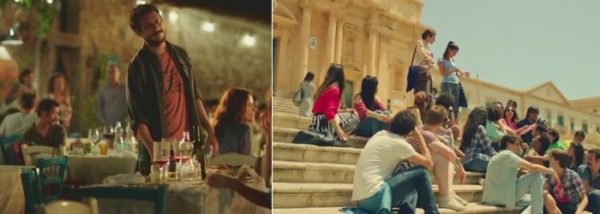 Dalle foto è possibile osservare la scalinata della chiesa di San Nicolò e una scena notturna girata a Marzamemi durante una cena.