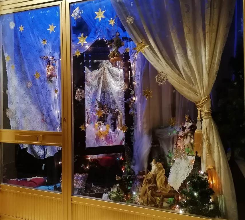 «Lo stile delle rappresentazioni presepiali sono i tendaggi – spiega Sergio Carpinteri – che coprono e scoprono, rivelano il mister Divino e l’idea di armadio (arma.Dio) indicando così l’atteggiamento di Dio, in questo momento. L’apparente chiusura dell’armadio, diventa trasparenza per un diverso futuro a questa apocalisse sanitaria. Nel Presepe, non nell’albero, è il segno cristiano per eccellenza. Lo dico da artista-cristiano. Nel Natale-Covid, ristretto e chiuso nelle mura di casa, un segno che da consolazione … senza viaggi, cenoni, veglioni nella propria città. La bellezza e la natura, saranno le cose da desiderare, quando saremo liberi da questo virus».