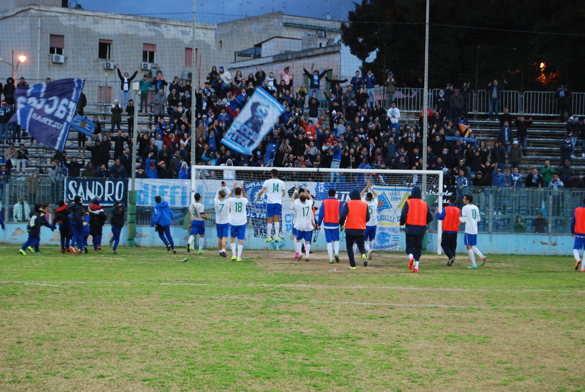 Nella ripresa, al 48’ Baiocco serve Sibilli che si fa ipnotizzare da Pandolfo, mentre gli ospiti al 51’ restano in 10 per la doppia ammonizione di Ascione. Un minuto dopo, terzo fallo non visto ai danni di Arena da parte di Simonetti. Dominio totale della squadra di casa con 13 angoli a favore e una serie di occasioni sfumate di un nulla. Al 53’ Arena mette in mezzo per Savanarola che concede il bis. Dopo è una girandola di sostituzioni, con gli azzurri che sfiorano più volte la quarta rete con Arena e Catania.