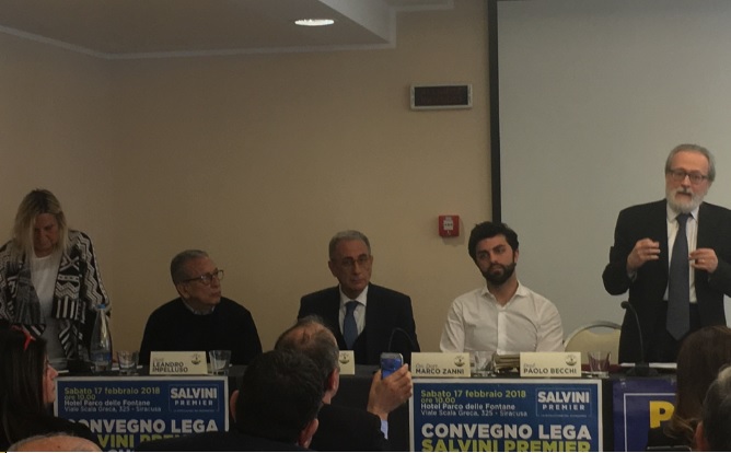 Siracusa. “Prima gli italiani” è lo slogan della campagna leghista per le politiche del 4 marzo. Il partito si è presentato con un contrassegno elettorale nazionale, come “Lega”, senza Nord, e l’obiettivo, “Salvini premier”, esplicitato nel simbolo. Una svolta per un partito che, in vista delle imminenti elezioni, punta a governare il Paese con un programma diverso, con una squadra di soggetti pronti ad affrontare la sfida. Come sostiene Leandro Impelluso, responsabile della “Lega Salvini Premier” a Siracusa, durante una manifestazione organizzata ieri mattina nella sala dell’hotel “Parco delle Fontane” di fronte a una piccola cittadinanza attenta.