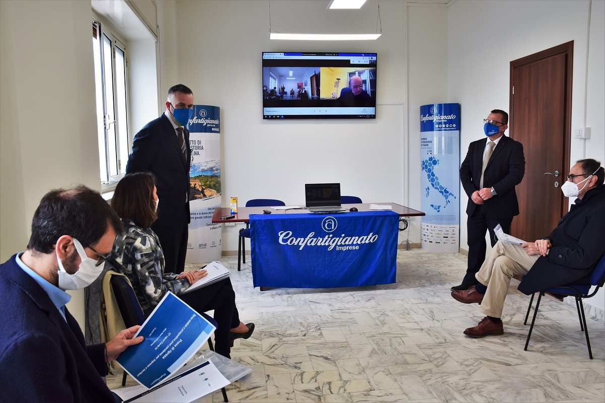 Dopo le propedeutiche interlocuzioni con gli imprenditori e l’incontro di due settimane fa con i deputati regionali, la dirigenza di Confartigianato Imprese Siracusa ha concluso ieri la serie di confronti istituzionali ospitando nella sede di Piazza Adda (nel rigoroso rispetto delle norme anticovid) la delegazione dei parlamentari nazionali di riferimento del territorio siracusano a cui è stato consegnato un dossier. Erano presenti la deputata azzurra Stefania Prestigiacomo, il senatore dei Cinquestelle, Giuseppe Pisana ed i suoi colleghi di partito alla Camera, Maria Marzana, Paolo Ficara e Filippo Scerra. A fare gli onori di casa il presidente ed il direttore di Confartigianato Imprese Siracusa, rispettivamente, Daniele La Porta ed Enzo Caschetto, mentre, in collegamento streaming, ha preso parte all’incontro anche il vicepresidente nazionale di Confartigianato Imprese, con delega al Mezzogiorno, Filippo Ribisi. Presenti anche i rappresentati delle categorie agroalimentare e ristorazione, Paolo Grande e Gipi Marullo.